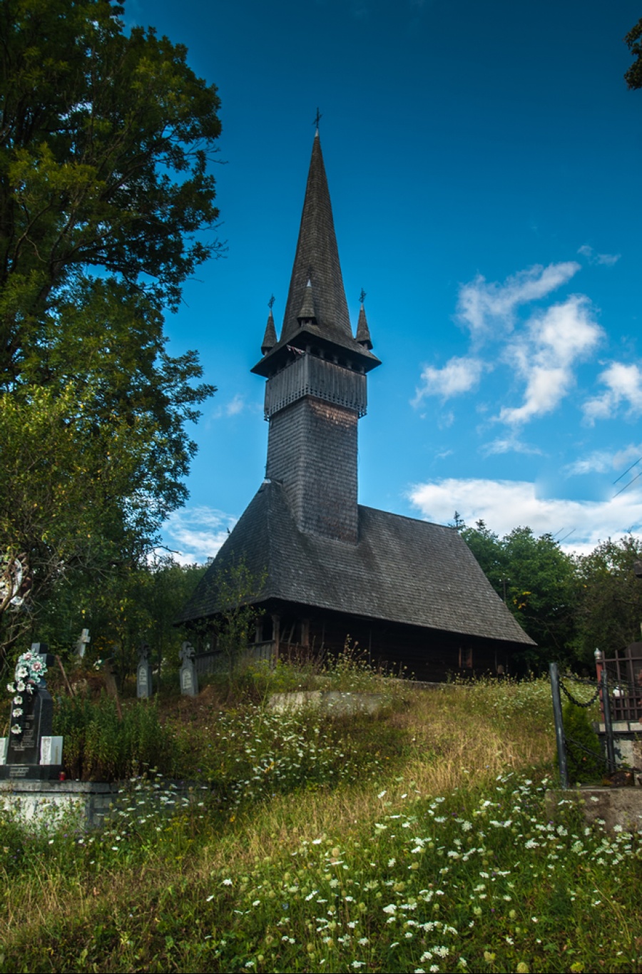 "Biserica de lemn cu hramul "Sf. Nicolae" a fost ridicată la 1870 şi face parte din grupul clădirilor de mari dimensiuni prevăzută cu acoperiş simplu, cu absida inclusă şi un turn-clopotniţă impresionant ca înălţime, flancat de patru turnuleţu, semn al importanţei comunităţii la vremea respectivă. De reţinut sunt uşile împărăteşti, ce se remarcă prin forma deosebită a vrejurilor florale cu ciorchini de struguri la bază şi care cuprind patru medalioane faţă de şase cum se obişnuieşte la alte biserici din zonă". ( Grigore Man- Biserici de lemn din Maramureş)