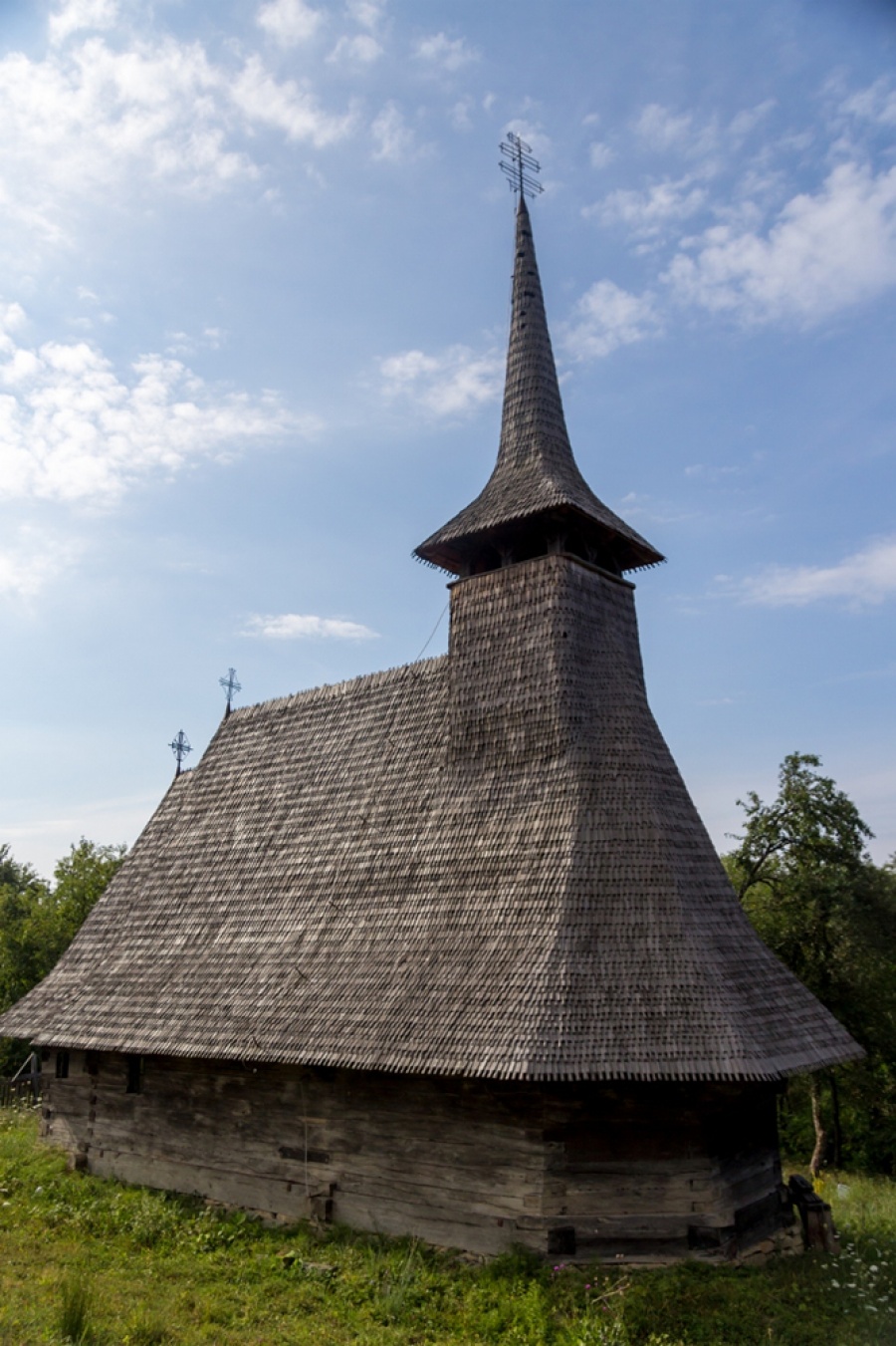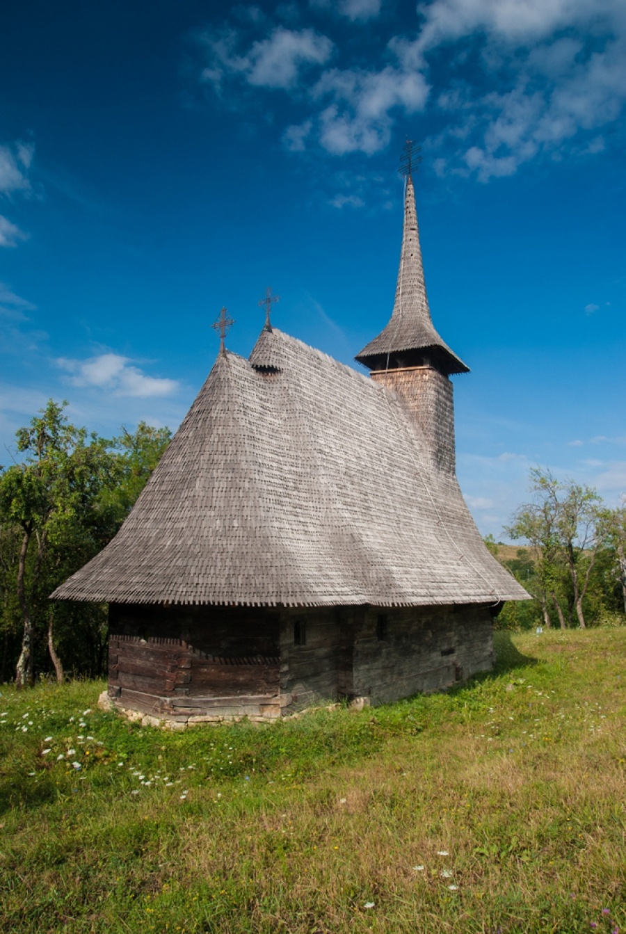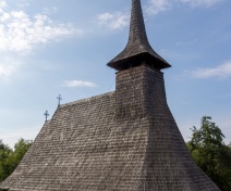 "Biserica de lemn cu hramul "Sf. Arhangheli" a fost ridicată în cimitir pe la 1706 prin contribuţia credincioşilor de către meşterul lemnar Both Grigore ce şi-a lăsat înscris numele pe grinda de deasupra uşii de la intrare. Ancadramentul uşii de la intrare păstrează o inscripţie în slavonă şi o minunată decoraţie dispusă în semicerc, cu torsade şi dinţi de lup. Portalurile uşii de trecere din pronaos în naos sunt decorate excepţional cu rozete încrustate cu modele arhaice, neîntâlnite la alte biserici. "( Grigore Man- Biserici de lemn din Maramureş)