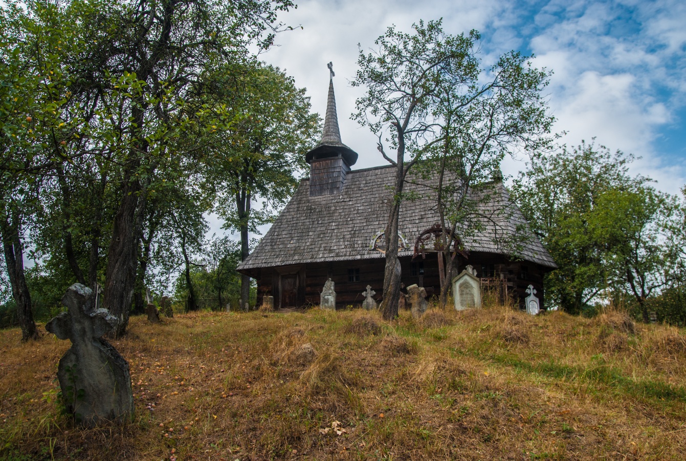 "Biserica de lemn cu hramul "Sf. Dumitru" se pare că a fost ridicată pe la 1604, întrucât incizia de deasupra uşii, confirmă pe la 1802 o reparaţie şi nu o construcţie nouă, cum înclină unii să creadă. Cert este că această construcţie de mici dimensiuni are caracteristici arhaice cu pronaos tip tindă, fără decupări laterale uşii de acces în naos, acoperiş simplu prevăzut cu un mic coif cu cruce în faţă şi un turn-clopotniţă, ce se ridică direct din acoperiş, cu foişor şi balcon."( Grigore Man- Biserici de lemn din Maramureş)