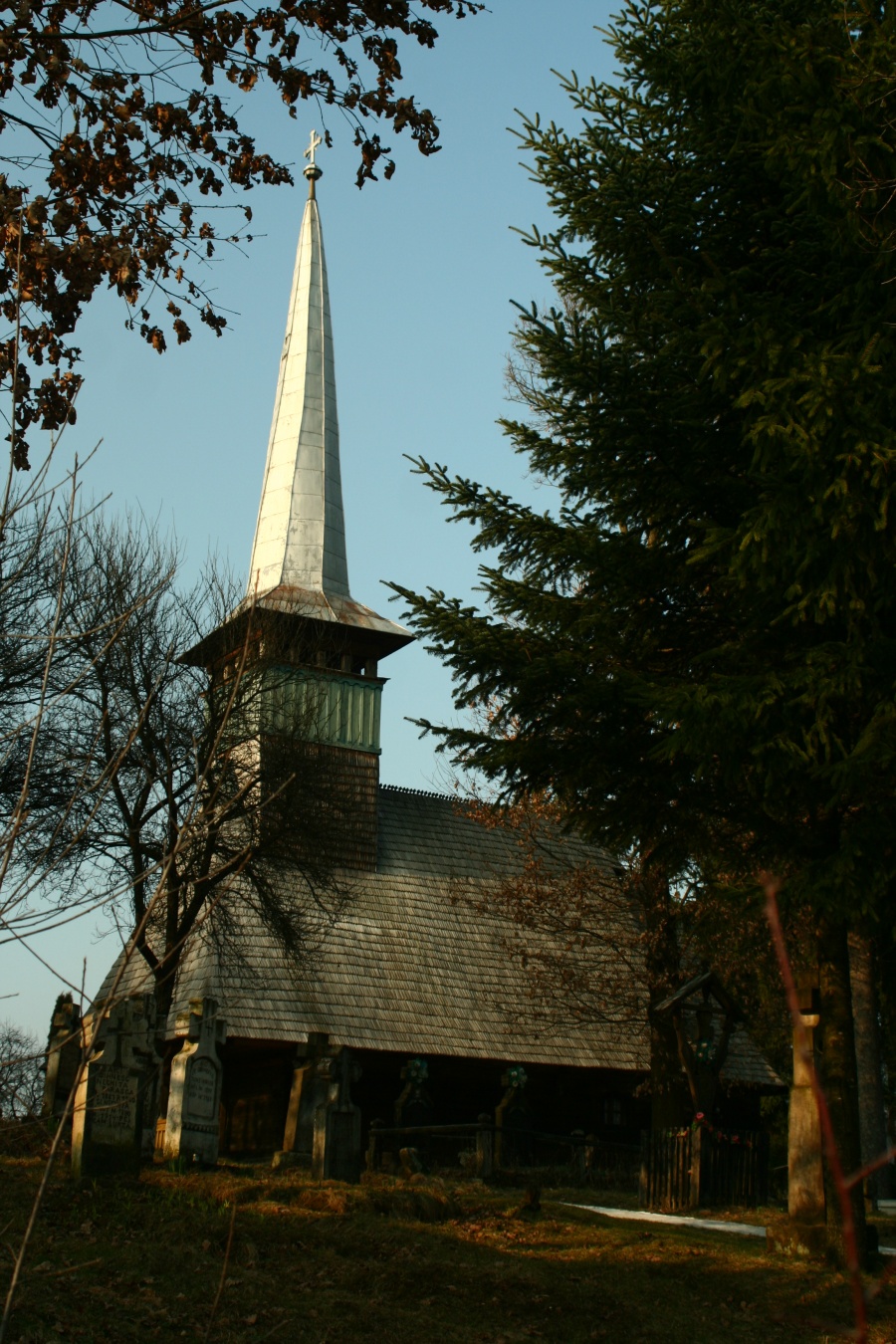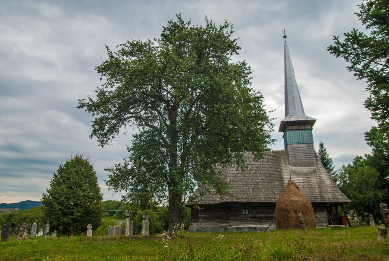 Biserica de lemn cu hramul „Sf. Arhangheli" a fost ridicată pe la 1842, lângă alta mai veche, de la care se mai păstrează blocul de piatră care a servit ca Sf. Masă şi care acum, alături de nişte lespezi enorme, serveşte ca masă pentru pomeni.