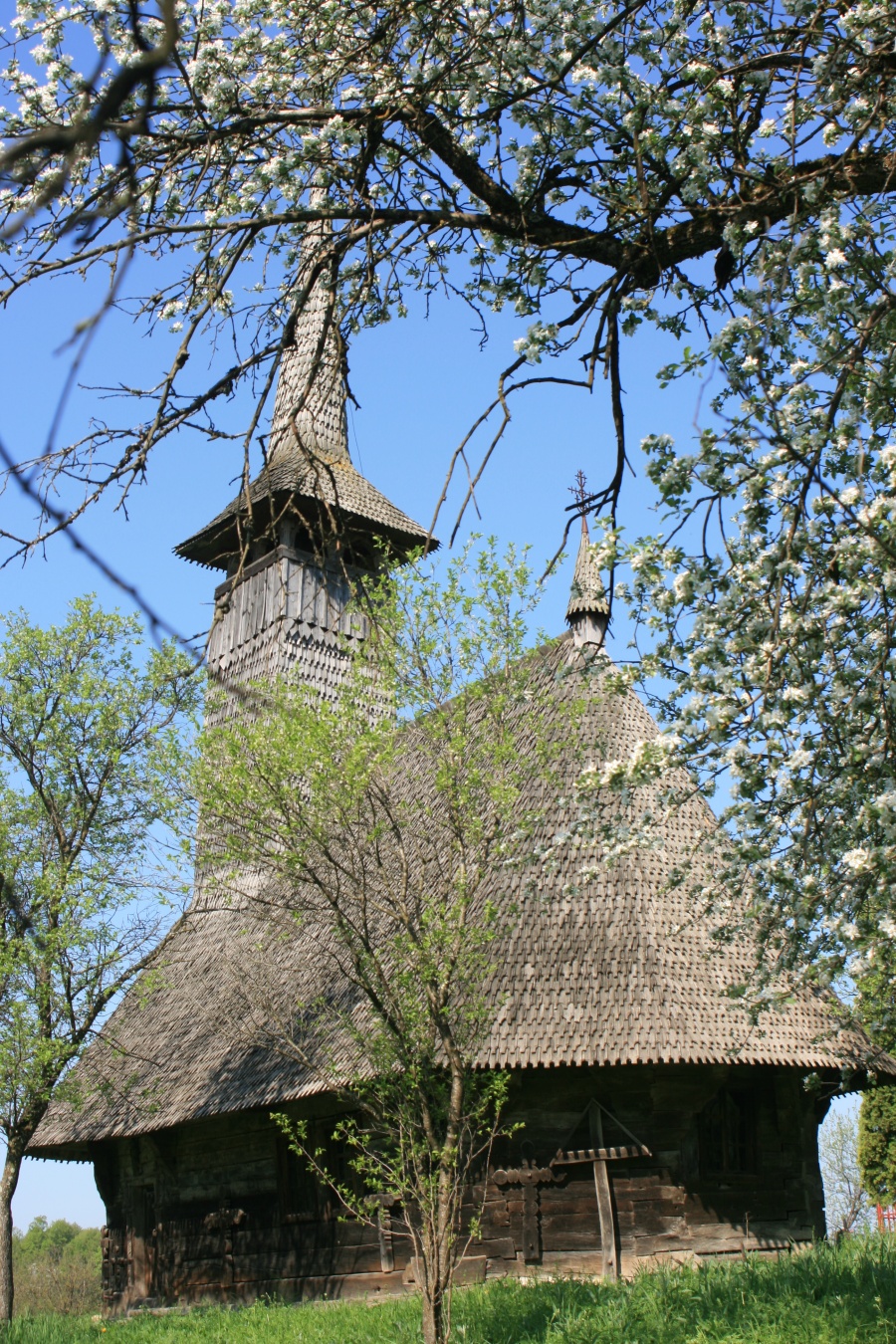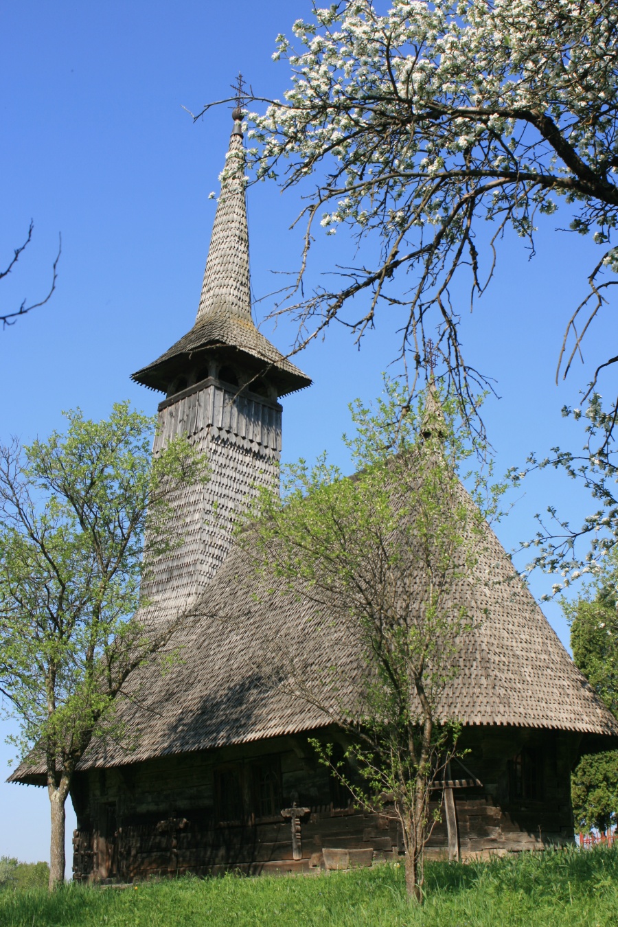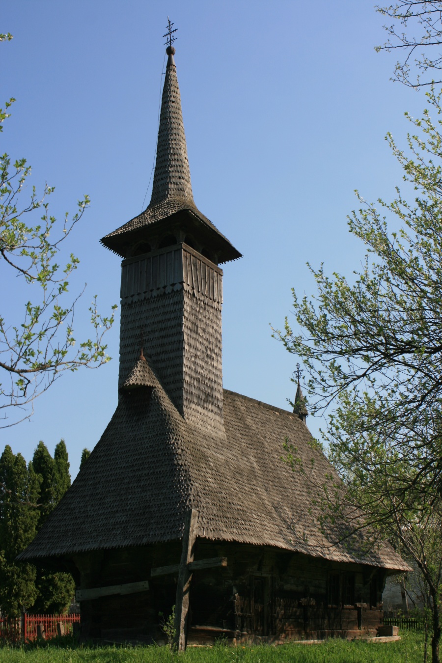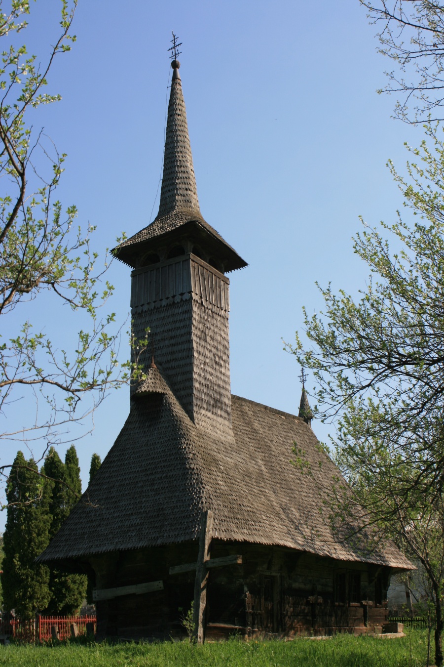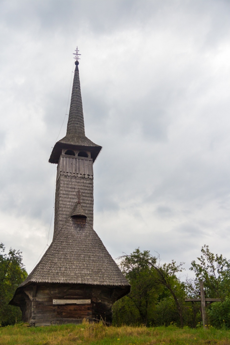 Biserica de lemn cu hramul "Sf.Arhangheli" a fost construită la sfârşitul sec. al XVII-lea sub formă rotundă, având pronaosul şi absida pentagonale, cu accesul pe latura sudică.