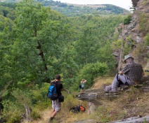 Pietrele Şoimului – De la Buteasa Râu, trecem râul peste podul de beton urcăm în serpentine, pe DJ 184B ce trece prin în satul Codru Butesii, ajungem la grupul de case din Mesteceni, de la obârşia văii Căldăruşii, iar după 2,7 km ajungem la intersecţia ce duce în Fundul Comnilei. De aici părăsim drumul cotim în dreapta pe drumul de culme, lăsând în stînga accesul la grupul de case din Dâmbul Izvorului şi după 15 min. vedem în dreapta pe un vâlcel un bloc alb de marmură, care este greu de explicat pentru profani cum a ajuns aici. Legenda spune ca l-ar fi aruncat Pintea Viteazul, peste Lăpuş din Dealul Toporului. Continuăm coborârea pe poteca până la capătul acesteia, iar spre stânga ajungem deasupra brâului de stânci, pentru a ajunge la baza abruptului Pietrelor Şoimului, coborâm în serpentine prin partea stângă cu mare atenţie. Efortul ne este râsplătit de sălbătăcia zonei şi frumuseţea abruptului constituit din şisturi cristaline foarte fragmentate şi acoperite pe alocuri de iederă.